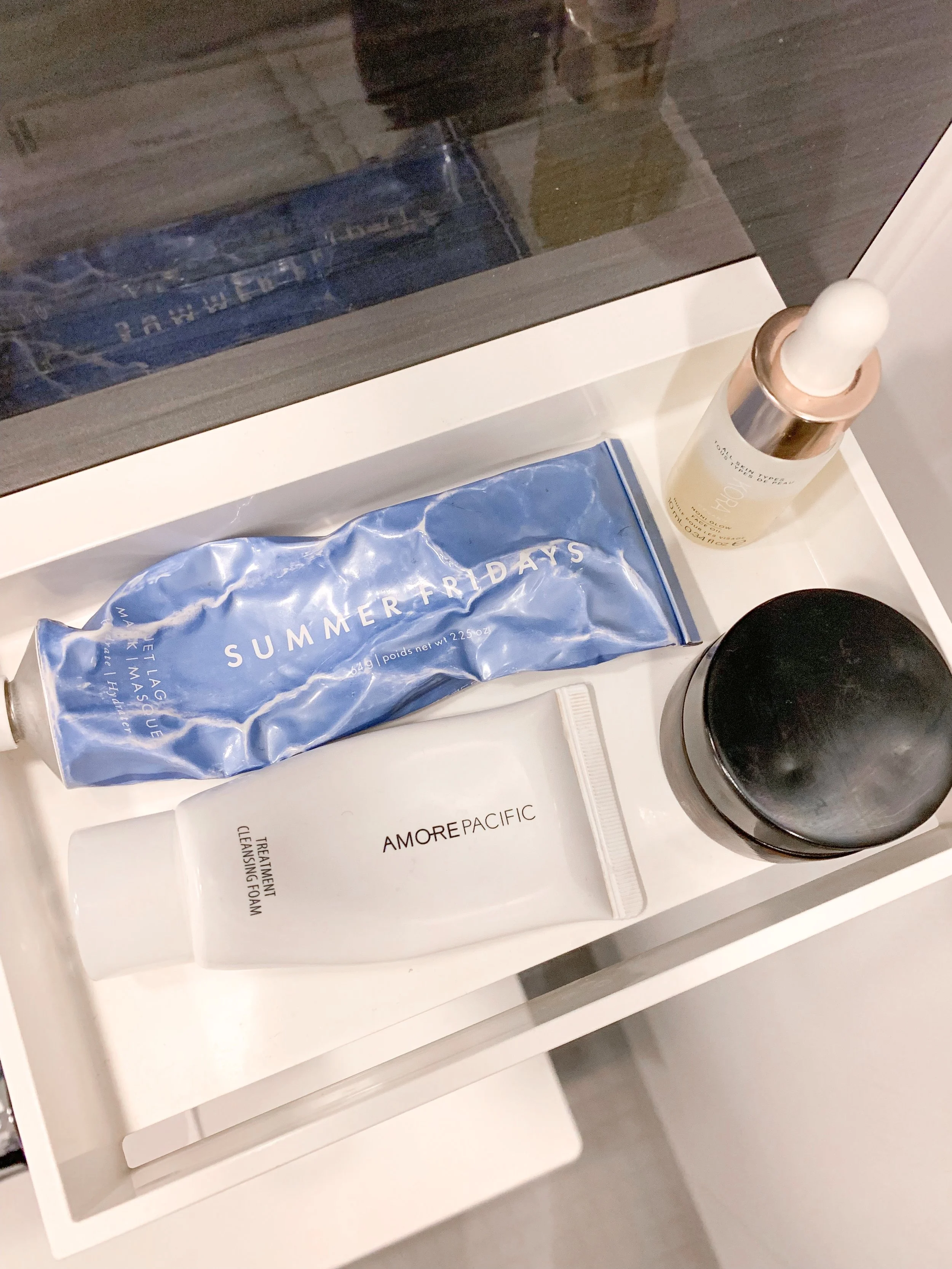Let’s start with sun care. I knew I wanted something with a higher SPF that had a light coverage since I’d be jumping in and out of the pool, The Origins Ginzing Tinted Moisturizer with SPF 40 was the perfect fit. This products smells heavenly, has a slight tint, one of those ones with gray beads that burst as you blend it into your skin, and there’s no traces of it when you’re in the water. Along with the SPF, this sun hat from H&M definitely saved my scalp, and helped provide some shade in the 90 degree heat. Love a good sun hat, cute and functional!